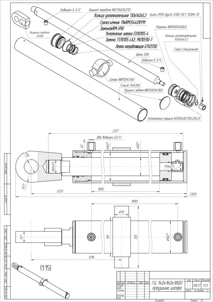 Проект гідроциліндра ГЦ 140х160х1800