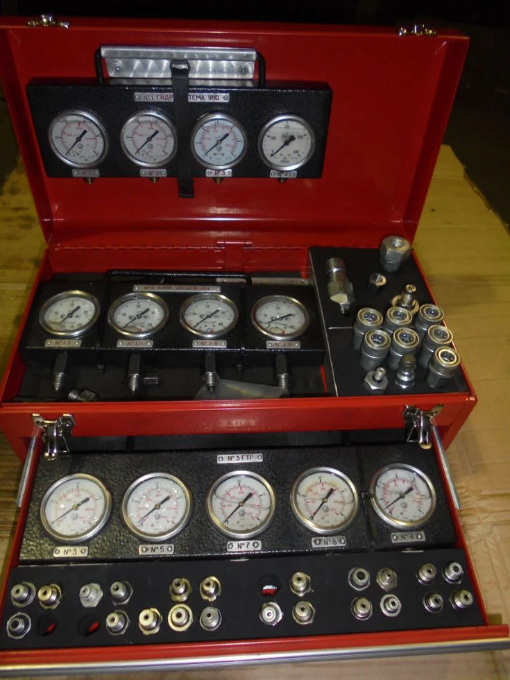 Вимірювальні гідравлічні системи, гідроакумулятори , реле тиску, Штуцера, датчики тиску, витратоміри, різьбові з'єднання з манометром. шлангопроводиКонтрольно-вимірювальна апаратура для діагностики гідросистем.