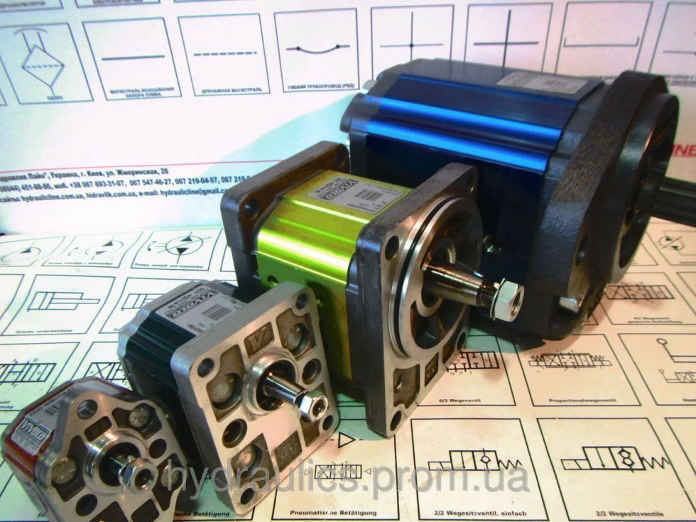 подробнее Полезная информация В ассортименте продукции ООО «Гидравлик Лайн» отдельным разделом представлены гидравлические насосы объемного действия для незамкнутых систем. Почти все основные модели представленных насосов всех типов и с различными величинами рабочих объемов имеются в наличии на складе в г.Киеве. Это помогает ООО «Гидравлик Лайн» решать определенные задачи при производстве гидравлических агрегатов, а также удовлетворять запросы производителей различного технологического оборудования при комплектации изделия и конечных потребителей при заказе запасных частей. Применение гидравлических двигателей (гидронасосов) Насос является силовой установкой для гидравлических приводов и трансформирует механическую энергию электродвигателя, в большинстве случаев, (крутящий момент, частоту вращения) в энергию масла (объемный расход, давление). В автомобильной, сельскохозяйственной и т.п. технике насос может вращаться за счет двигателя внутреннего сгорания через редуктор отбора мощности. Насосы объемного действия, которые предлагает ООО "Пневмакс" по принципу действия можно разделить на три большие группы: зубчатые; аксиально-поршневые; пластинчатые. Шестеренный с внешнем зацеплением Достоинства